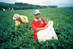 Etwa 20 Frauen und Männer jäten ein Soja-Feld im Inneren des Bundesstaates Rio Grande do Sul. Vor 15 Jahren gehörte das Land einem reichen Großgrundbesitzer. Dann besetzten es 1.500 Landlose und die Regierung war gezwungen, die bis dahin ungenutzte Farm zu enteignen. Die BesetzerInnen gründeten Produktionsgemeinschaften, bauten Grundnahrungsmittel wie Bohnen oder Mais und auch Exportprodukte wie Soja an. Zunächst lief das „konventionell“ mit viel Dünger und Pestiziden, so der Landarbeiter Jurandir Grosseli. Aber dann habe man gemerkt, dass die Gifte Mensch und Umwelt stark beeinträchtigen. Also stellten sie auf Bio-Soja um.