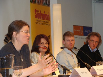 body1 Am Podium: Nicole Lieger, Werner Hörtner (unsichtbar), Irmgard Kirchner, Christian Felber und Gottfried Kühbauer.