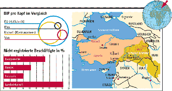 Zwar gehört auch ein Ausgleich der großen regionalen Disparitäten zu den EU-Forderungen an die Türkei, doch sieht es nicht danach aus, als ob dieses Erbe der Vergangenheit rasch überwunden werden könnte. Weder das seit Jahren vorangetriebene Südostanatolien-Projekt (GAP), noch die Ende Mai eröffnete Ölpipeline von Baku in Aserbaidschan nach Ceyhan an der türkischen Mittelmeerküste werden dazu einen unmittelbaren Beitrag liefern. Das GAP-Projekt hat mit zahlreichen Stauseen am Euphrat und Tigris neben der Energieversorgung der Westtürkei vor allem einen bewässerungsintensiven Baumwollanbau im großen Stil ermöglicht. Und von der Pipeline kann die lokale Wirtschaft ohnehin nicht profitieren – es sei denn, die damit verbundenen Einnahmen würden zum Teil in die Region kanalisiert.