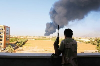 Konflikt zwischen Karama-Allianz und Islamisten-Allianz Fajr entzündet sich. Die international anerkannte Regierung muss aus Tripolis in den Osten des Landes fliehen.
