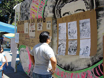 Seit dem 22. Mai 2006 besetzen AktivistInnen der nationalen Lehrergewerkschaft das historische Zentrum der Stadt Oaxaca, Hauptstadt des gleichnamigen Bundesstaates im Süden des Landes. Anfangs ging es um Gehaltsforderungen, eine bessere Ausstattung der Schulen und soziale Leistungen, wie z.B. Frühstück für die Schulkinder, die oft hungrig zum Unterricht kommen. Gouverneur Ulises Ruiz wollte sich auf keine Verhandlungen einlassen, startete in den Medien eine Rufmordkampagne gegen die Lehrerinnen und Lehrer und schickte am 14. Juni die Polizei, um die Besetzungsaktion mit Gewalt zu beenden. Der Schuss ging nach hinten los, denn die Repression löste einen einzigartigen Solidarisierungseffekt aus. Binnen weniger Tage schlossen sich über 300 Basisorganisationen zur Asamblea Popular del Pueblo de Oaxaca (APPO), zusammen, einer „Versammlung des Volkes von Oaxaca“. Einziges Ziel der Allianz: der Rücktritt von Gouverneur Ulises Ruiz.