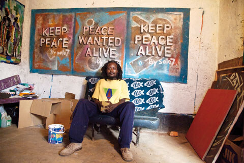 Er fordert auf Bildern, Mauern und Straßen Frieden ein. Ein Porträt des kenianischen Slum-Künstlers Solo 7.