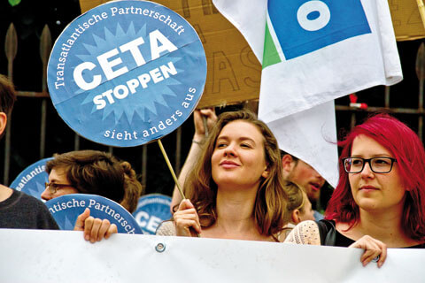Schon in den nächsten Wochen und Monaten fallen in Österreich und der EU die Entscheidungen über CETA, das umfassende Wirtschafts- und Handelsabkommen zwischen der EU und Kanada. Neben den Konzernklagsrechten beinhaltet CETA alles, wovor KritikerInnen auch bei TTIP warnen: Ausverkauf öffentlicher Dienstleistungen, Bedrohung der heimischen Landwirtschaft, Aushöhlung des in Europa geltenden Vorsorgeprinzips, sinkende Umwelt-, Sozial- und Lebensmittelstandards u.v.m. Bei einer Kundgebung vor dem Bundeskanzleramt Ende Mai forderte das Bündnis „TTIP Stoppen“, das von über 50 österreichischen Organisationen aus der Zivilgesellschaft getragen wird, Bundeskanzler Christian Kern und sämtliche MinisterInnen auf, CETA eine Absage zu erteilen.