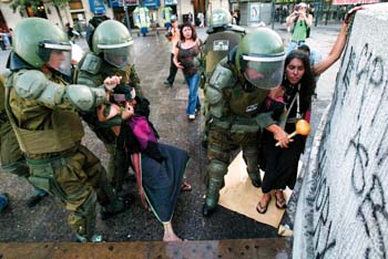 Wütend und unnachgiebig zeigte sich die sozialistische Staatschefin bei ihrem Wien-Besuch anlässlich des großen EU-Lateinamerika-Gipfels im Mai 2006, als sie von hier lebenden Landsleuten auf die Situation von inhaftierten Mapuche-Aktivisten angesprochen wurde. Sie wolle sich in die Angelegenheiten der Justiz nicht einmischen, so die Präsidentin, die erst zwei Monate zuvor ihr Amt angetreten hatte. Dass die Gefangennahme und Verurteilung junger Indigener auf Grundlage eines Antiterrorismus-Gesetzes aus der Zeit Pinochets erfolgte, schien die Hoffnungsträgerin eines neuen, sozialen, humanen Chile nicht zu berühren. Nach diesem Gesetz kann selbst das Anzünden von Feldern oder unbewohnten Gebäuden als terroristischer Akt eingestuft werden.