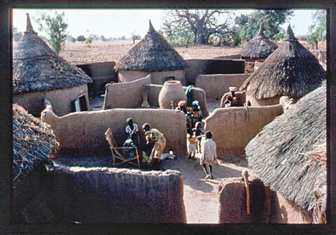 Die physische Erscheinung des Dorfs hat sich über die Jahrzehnte wesentlich verändert. Das Foto von 1985 zeigt eine traditionell angelegte „Concession“, wie das Gehöft einer Familie hier genannt wird – runde Häuser mit Strohdächern und Lehmwänden (in der Kolonialzeit abschätzig als „Lehmhütten“ bezeichnet), die sich für das westliche Auge sehr malerisch ausnehmen.