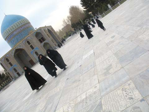 Doch auch der Mullah in Mashhad, der uns in sein Haus eingeladen hat, träumt von besseren Zeiten. Selbst er hält ein Plädoyer für die Trennung von Staat und Kirche. Wir sitzen auf Teppichen am Boden seines geräumigen Wohnzimmers. Tee und „Blumen Mohammeds“ werden serviert, ein Gebäck, das früher „Dänischer Kuchen“ hieß – vor dem Karikaturenstreit. Der 52-Jährige ist Ende der 1970er Jahre aus Afghanistan geflüchtet. Seit über 30 Jahren lebt er im Stadtteil Golshar, der in keinem Reiseführer zu finden ist. Hier wohnen mehrere hunderttausend AfghanInnen, die überwiegende Mehrheit aus der Volksgruppe der Hazara, die als Angehörige des Schiismus in ihrem sunnitischen Heimatland verfolgt werden. Der Mullah hat zwei Frauen und sechs Kinder, alle ohne Aufenthaltsgenehmigung. Bisher haben sie von seinem Stipendium gelebt, doch in Kürze hat er sein fast zwei Jahrzehnte dauerndes Theologiestudium beendet. Und dann? „Ich darf hier nicht arbeiten“, sagt er. Seine Kinder gehen zwar in die Schule, bekommen aber kein offizielles Abschlusszeugnis. Die Söhne werden, wie so viele, als billige Arbeitskräfte auf Baustellen ihr Leben fristen. Oder sie werden, wie so viele andere auch, ihre Ersparnisse zusammenkratzen, Schlepper bezahlen und versuchen, nach Europa, in die USA oder nach Kanada zu gelangen. Dass auch dort das Glück nicht auf der Straße liegt, weiß der Mullah spätestens, seit es sein zweitältester Sohn nach Österreich geschafft hat und er dort seit mehr als zwei Jahren in einem Flüchtlingsheim lebt. Mit 150 Euro im Monat und kaum mehr Perspektiven als in Golshar.