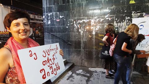 Möglichkeitsräume entstehen lassen, für Kunst und Kultur, für zivilgesellschaftlichen Wandel, für den freien Ausdruck und Austausch von Erfahrungen und Visionen – das sind die Anliegen von SPACES. Während des Programms in Tiflis teilten 41 KünstlerInnen aus zwölf Ländern ihre Reflexionen zu Stadt und Gesellschaft mit dem Publikum. In „Collecting Fears“ konnten StadtbewohnerInnen ihre Ängste öffentlich am Schreibtisch der Künstlerin Andrea Schneemeier abgeben und sichtbar machen – von der „Angst vor meinem Bruder“ bis hin zur „Angst vor der orthodoxen Kirche“.