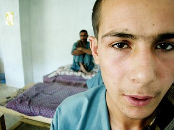 Fast alles im Gesicht von Machtabbudin Chawari weist darauf hin, dass er in den letzten zwei Jahren eine schwere Zeit durchgemacht hat: die Mundwinkel, die Lider und die Augen zeigen nach unten, die Mimik ist unsicher und matt. Auch wenn auf seine Backen wieder die erste Röte zurückgekehrt ist, sieht sein Gesicht noch fahl aus, und der erst zarte Flaum auf dem Kinn und der Oberlippe erinnert daran, dass es noch etwas früh ist für den 17-Jährigen, ein solch verlebtes Gesicht zu haben.