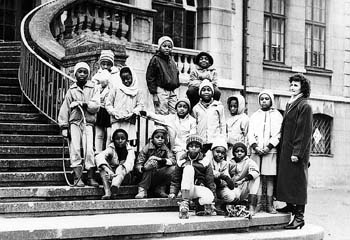 Die namibischen Kinder gehen in der DDR in öffentliche Schulen, wo sie nach einem speziellen Lehrplan unterrichtet werden. Monika Staedt, die die namibischen Kinder von 1985 bis 1988 in Geografie unterrichtet und mit ihnen im Ferienlager in Prerow an der Ostsee war, denkt gerne daran zurück. Sie sagt, es sei ihre schönste und beeindruckendste Zeit als Lehrerin gewesen. „Ich hatte immer das Gefühl, dass uns diese Kinder als ihre Ersatzeltern ansahen. Sie waren ‚meine‘ Kinder und entsprechend vertrauensvoll war unser Umgang miteinander“, so Monika Staedt.