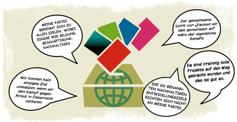 Wieso Österreich bisher bei der Umsetzung der SDGs, der nachhaltigen Entwicklungsziele der Vereinten Nationen, wenig weiterbrachte, und wie die Parteien kurz vor der Nationalratswahl dazu stehen. Stefanie Braunisch hat recherchiert.