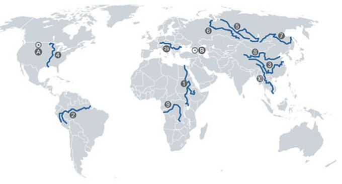 Der Amazonas führt mit durchschnittlich 206.000 m³/s mehr Wasser als die sieben nächstkleineren Flüsse zusammen und etwa 70-mal mehr als der Rhein.