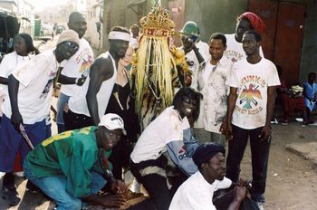 Weithin hört man das Trommeln und Singen. Gruppenweise ziehen großteils junge Leute, auch viele Kinder, durch die Straßen von Banjul, der Hauptstadt des kleinen westafrikanischen Landes Gambia. Die Stimmung ist ausgelassen, es wird gesungen und getanzt. Auf den T-Shirts der Jugendlichen prangen Logos der diversen Freizeitclubs, denen sie angehören. Andere haben ihre Hosen und Hemden eigens zerrissen oder zerschnitten. Einige Männer, Jugendliche wie Erwachsene, tragen Frauenkleider, Perücken, Hüte oder Turbane. Die meisten Gruppen scharen sich jeweils um eine einzelne besonders auffällig kostümierte Gestalt, den „Hunting“. Er ist in Felle oder Decken gehüllt, sein Kopf wird von Hörnern oder einem geschnitzten Tierhaupt gekrönt. Am Rücken trägt er Kalebassen, große Schneckenhäuser und Muscheln, die durch das regelmäßig darauf versprengte Palmöl eine knallgelbe Färbung angenommen haben. Der Weg wird ihm von zwei BegleiterInnen gewiesen, die Schüsseln mit Palmöl tragen.