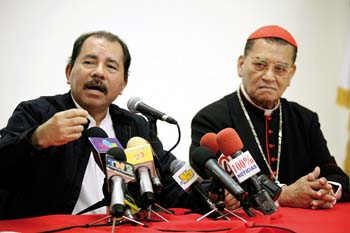 Das war dann schließlich auch den Bischöfen zuviel der Anbiederung. Leopoldo Brenes, der Vorsitzende der Bischofskonferenz, forderte den Abzug dieser Gruppen, die mit Madonnenstatuen den Eindruck erweckten, als agierten sie im Namen der Kirche. Die Kirche der Armen, die Befreiungstheologen und die Basisgemeinden, einst eine wichtige Stütze der Revolution, wurden schon lange verprellt und zugunsten einer Allianz mit dem erzkonservativen und einstigen Erzfeind Kardinal Obando y Bravo zur Seite geschoben. Tomás Borge, einst gefürchteter Innenminister, heute Botschafter Nicaraguas in Peru, hat vor einiger Zeit verkündet, es sei einer der größten Fehler der Revolution gewesen, die Befreiungstheologie unterstützt zu haben und nicht die Amtskirche.