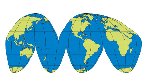 Um Verzerrungen in der Darstellung der Kontinente zu reduzieren, unterbrach der US-amerikanische Kartograph John Paul Goode (1862-1932) 1923 als Erster Weltkarten in der Mitte der Ozeane.
