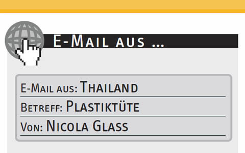 Egal, wohin ich in Bangkok zum Einkaufen gehe: Oft schleppe ich hinterher immer einen Haufen Plastiktüten mit mir herum. Dabei nehme ich mir immer vor, alles im Rucksack oder in einer Jutetasche zu verstauen. Letztere aber vergesse ich oft. Daher landen die vielen Tüten dann doch immer wieder bei mir, muss ich selbstkritisch sagen. Immerhin wehre ich ab, wenn die Verkäufer mir selbst winzige Päckchen Kaugummi oder Bonbons extra verpacken wollen. Und wenn ich mir ein Stück Kuchen zum Mitnehmen kaufe, steckt man mir auch noch Gäbelchen und Löffelchen aus Plastik mit dazu. Das Besteck schiebe ich dann jedes Mal wieder über die Theke zurück.