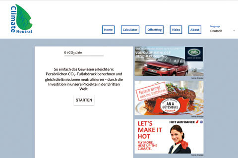 Wie das geht, zeigt die Website www.climate-neutral.org. „Kaufen Sie sich durch wenige Klicks CO2-neutral!“, lautet die Lösung.