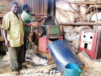 Zwischen den dröhnenden und stampfenden Maschinen bewegen sich eifrig staubige Gestalten, deren Gesichter hinter Tüchern versteckt sind: Alfreds MitarbeiterInnen. Mittlerweile werden über 20 Menschen beschäftigt. In der lauten und düsteren Produktionshalle arbeiten die Männer, im Lager und Verkauf die Frauen. Angezogen vom Erfindergeist kommen Menschen von weither. „Meinen Lehrerberuf hab ich an den Nagel gehängt. Hier kann ich viel über Maschinen lernen“, erzählt Francis. Auch bei Studierenden technischer Universitäten sind Sommerjobs in Alfreds Werkstatt begehrt. Denn er legt Wert darauf, sein Wissen weiterzugeben. Die MitarbeiterInnen sind zufrieden. Obwohl ihr Chef noch nie von Corporate Social Responsibility (sozialer Unternehmensverantwortung; siehe auch Artikel Seite 24; Anm.d.Red.) gehört hat, übernimmt er soziale Verantwortung gegenüber seinen Angestellten. Mit den Erträgen der Firma baut er nicht nur ein Haus für sich, seine zwei Ehefrauen und elf Kinder, sondern auch ein Wohnheim für seine Angestellten in unmittelbarer Nähe zur Werkstatt.