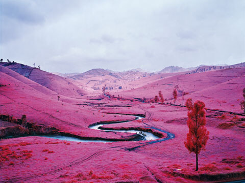 Fremdartig, fast wie aus einer anderen Welt, lassen die Fotos des irischen Künstlers Richard Mosse (Jahrgang 1980) den Ostkongo wirken. Doch die Aufnahmen, die mittels Falschfarben Konfliktzonen in den Kivu-Regionen festhalten, erlauben auch einen ganz neuen Zugang zum Thema und zur  Region. Mosse arbeitete mit Filmmaterial, das einst für militärische Überwachung verwendet wurde und das ein unsichtbares Spektrum an Infrarotlicht erfasst. Der Fotokünstler wird von der Galerie Carlier Gebauer vertreten.