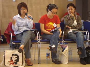 Die Diskrepanz der Lebensumstände von Österreich und China wurde durch die anschließende Forderung der österreichischen Gewerkschaftsvertreterin deutlich: 700 Euro Grundeinkommen pro Monat 14 mal jährlich in Österreich. Die Probleme der Gewerkschaften hier und dort könnten nicht konträrer sein. Die deutschen und österreichischen GewerkschaftsverteterInnen klagen über schwindenden Mitgliederstand und sinkenden Einfluss, während in China die zur Kommunistischen Partei gehörige All China Federal Trade Union (ACFTU) jegliche Versuche autonomer Gewerkschaftsbewegungen unterbindet. Jede (von der ACFTU erlaubte) neu gegründete Gewerkschaft wird automatisch indirekt Teil des Parteiapparates und damit demokratiepolitisch bedenklich. Alle ungewünschten Bewegungen werden unterdrückt, weil sie dem politischen Oberziel von „Stabilität und harmonischer Gesellschaft“ entgegen wirken könnten.