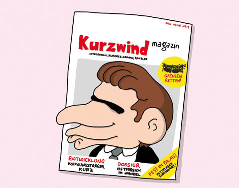 Der Künstler Mekutatatokushi hat von der Streichung der Förderungen des Südwind-Magazins gehört und sich Gedanken gemacht: Womöglich helfen eine Neuausrichtung und ein anderer Name, um für Außenminister und ÖVP-Obmann Sebastian Kurz wieder förderwürdig zu werden? Daraufhin hat uns Mekutatatokushi skizziert, wie das Konzept Kurzwind-Magazin aussehen könnte.