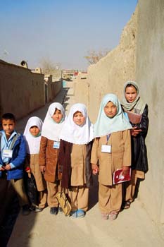 „Ich möchte einmal Ärztin werden.“ „Und ich Lehrerin“. „Ich am liebsten Ingenieurin.“ Die Mädchen stehen da in ihren braunen Schuluniformen und weißen Kopftüchern, Hefte und Bücher in Händen. Sie wissen, sie sind privilegiert, denn bei weitem nicht alle Mädchen und auch nicht alle Burschen in ihrem Viertel können die Schule besuchen. Das hat weniger mit ideologischen oder religiösen Gründen zu tun als vielmehr mit der wirtschaftlichen Not. Viele Menschen in Dasht-e Barchi, einem armen westlichen Außenbezirk der afghanischen Hauptstadt Kabul, weben Teppiche, um zu überleben – Erwachsene ebenso wie die Kinder. Die meisten sind Hazara, Angehörige der oft verfolgten schiitischen Minderheit – die Mehrheit stellen die sunnitischen Paschtunen und Tadschiken. Die Hazara in Dasht-e Barchi stammen nicht aus Kabul. Sie sind während der sowjetischen Besatzung (1979-89), des darauf folgenden Bürgerkriegs zwischen den Mudschaheddin oder der Taliban-Herrschaft (1996-2001) nach Pakistan oder in den Iran geflohen und nach dem Sturz der Taliban nach Kabul gekommen. Andere haben Afghanistan nie verlassen. Sie sind nur aus den zentralen Provinzen in die Hauptstadt gezogen, weil sie in ihren Dörfern kein Auslangen finden konnten.