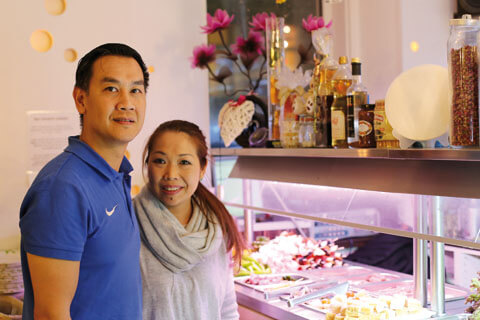 Quach Hoai Truc, 43, übersiedelte als Kind mit ihrer Mutter aus Südvietnam zum Stiefvater, der vor dem Vietnam-Krieg nach Österreich geflüchtet war. Lange arbeitete Hoai Truc in Deutschland in chinesischen Restaurants. Ihren eigenen Zugang zur Gastronomie fand sie, als sie nach Vietnam zurückging: Dort nahm sie das typische Streetfood, gegrillte Spießchen, unter die Lupe. „Ich habe sogar einer alten Frau das Rezept für eine Erdnuss-Sauce abgekauft.“ Nach sechs Jahren kehrte sie nach Europa zurück und eröffnete in Wien ihr eigenes Lokal, das sie nach ihrem verstorbenen Stiefvater „Chap In“ nannte. Die Gäste erwarten hier (glutamatfreie!) Spießchen aus Fisch, Fleisch und Gemüse vom Buffet. Gegrillt werden sie von Hoai Trucs Lebenspartner Do Cong Chau. Kennengelernt haben sie sich, als er bei ihr aß. „70 Prozent unserer Gäste sind aus Asien“, betont Hoai Truc. cs