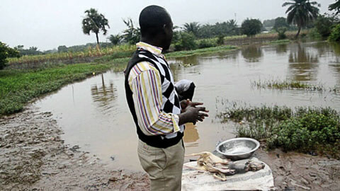 Zum Artikel Ghana: Tödlicher Fluss Densu. Auch Schlachtungen werden wie hier am Fluss Densu direkt am Ufer durchgeführt und die Reste ins Wasser geworfen. Von Ghana: Tödlicher Fluss Densu. Ohne Abo lesbar Artikel lesen