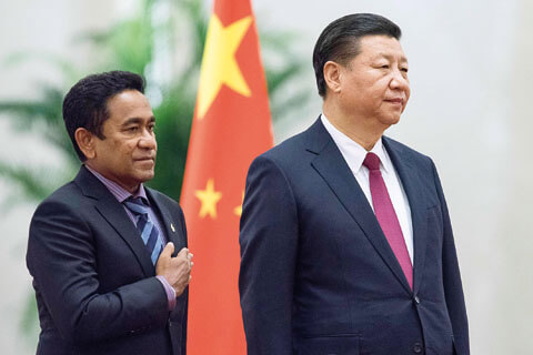 Zum Artikel Malediven: Wie China den Konkurrenten Indien verdrängt. Enge Beziehung: 2017 lud Chinas Präsident Xi Jinping (r.) seinen Amtskollegen Abdulla Yameen aus den Malediven nach Peking ein. Von Malediven: Wie China den Konkurrenten Indien verdrängt. Ohne Abo lesbar Artikel lesen