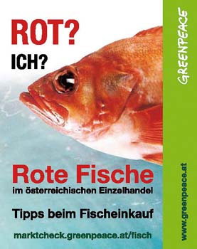 „Rote Fische“ in Österreich sind: Alaska-Seelachs/Pazifischer Polardorsch; Atlantischer Lachs aus Wildfang und Zucht; Atlantischer Dorsch; Hoki/ Blauer Seehecht; Neuseeländischer Sankt Petersfisch; Plattfische wie Scholle, Pazifische Scholle, Alaska-Heilbutt; Seehecht, Seelachs/Köhler; Shrimps und Garnelen: Black Tiger, White Tiger, Königs- bzw. Riesengarnelen, Gambas; Tintenfisch, Oktopus, Pfeilkalamar; Thunfisch mit Ausnahme von „Skipjack“-Thunfisch aus dem Pazifik, mit Schleppangeln gefangen. Den Kauf „Roter Fische“ zu vermeiden ist ein bescheidener Beitrag der KonsumentInnen für eine nachhaltige Fischwirtschaft.