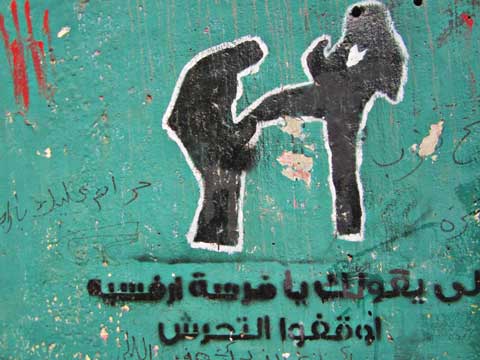 Unter den heutigen Graffiti nehmen jene von Frauen zu. Die Schablonen der Frauengruppe Nun al Neswa (NaN) nehmen vornehmlich die virulenten sexuellen Übergriffe aufs Korn. Berühmt geworden sind die Verteidigungs-Graffiti von NaN. „Wir wollen den Frauen zeigen, dass sie stark sind und sich sehr wohl zur Wehr setzen können“, sagt eine der Künstlerinnen.