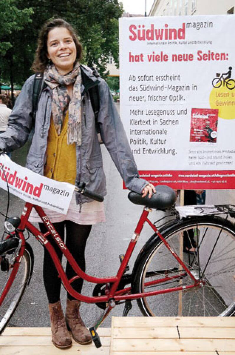 Beim traditionellen Südwind-Straßenfest am 30. Mai in Wien wurde das Südwind-Magazin in neuer frischer Optik erstmals der breiten Öffentlichkeit präsentiert. Über 300 Menschen wollten das neu gestaltete Südwind-Magazin mit einem Probeheft kennenlernen. Unter ihnen wurde ein Fahrrad verlost, das uns von der Stadtwerkstatt in Wien (www.alpenrad.at) zur Verfügung gestellt wurde.