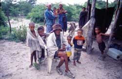 Noch im Vorjahr startete Botswana eine Gegenkampagne zu Survival. Auf der eigens eingerichteten Website zur San-Umsiedlung werden nicht nur die besten Absichten erklärt, sondern wird auch allen in- und ausländischen Interessierten versichert, dass sie sich vor Ort frei informieren und mit jedem Basarwa reden können. Trotzdem: Wer sich im Land nach dem Stand der Verhandlungen und des Rechtsstreits um die Landrechte der San umhört, gerät sofort in den Verdacht, ein Agent der verhassten Survival International zu sein. So erlebt bei unserem unangekündigten Besuch in New Xade, dem Umsiedlungsort an der Grenze des Wildreservats, den manche San, wie Roy Sesana, gerne mit „Ort des langsamen Todes“ übersetzen. „Nein, mit Roy Sesana könnt Ihr nicht so einfach sprechen“, stoppt uns Justice, ein von der Regierung eingesetzter Polizist gemeinsam mit Kgosi Lobatse Beslag, „seinem“ blutjungen Chief ebenfalls von Regierungsgnaden, dem seine Loyalität immerhin schon eine Ray Ban-Brille eingebracht hat. „Schließlich müssen wir wissen, was Ihr redet und ohne Bewilligung aus dem Büro des Staatspräsidenten könnt Ihr mit niemandem sprechen.“ Die feindselige Stimmung, die Betrunkenen vor einer Müllhalde aus Bierdosen, die trostlosen bettelnden Kinder und alten Frauen sagen ohnehin mehr als die sprichwörtlichen tausend Worte.