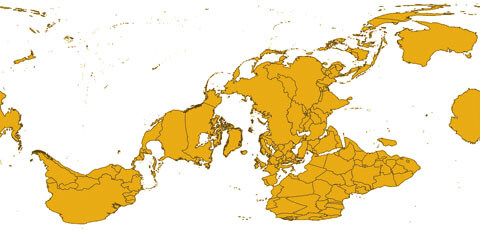 Ein ungewohnter Anblick: Nordpolzentrierte Ansicht des Globus.