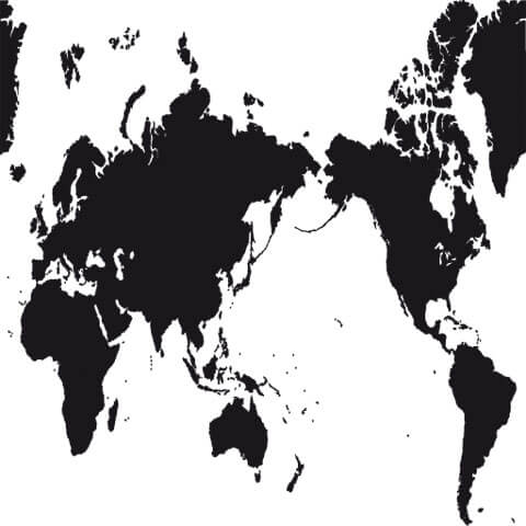 Rund 35 Prozent der gesamten Erdoberfläche oder die Hälfte der Meeresfläche der Erde nimmt der Pazifik ein. Grund genug, ihn in dieser Kartenansicht in die Mitte zu setzen.