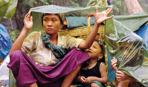 Der ständige Exodus aus Burma ist insofern kein Wunder. Menschen, die es schaffen, sich nach Thailand, Indien oder Bangladesch durchzuschlagen, werden nicht gerade freundlich aufgenommen. Im indischen Bundesstaat Mizoram leben heute geschätzte 60.000 Angehörige der Chin-Nationalität, ohne Dokumente und rechtlos, die sich mit den miesesten Jobs über Wasser halten müssen. In Thailand dürfen MigrantInnen nur in bestimmten Sektoren arbeiten (Bauwirtschaft, Plantagen, Hausarbeit, Bekleidungsindustrie, in den Häfen) und werden schlechter bezahlt als InländerInnen. An Straßensperren werden Fahrzeuge nach „Illegalen“ oder nach MigrantInnen durchsucht, die es gewagt haben, den ihnen zugewiesenen Aufenthaltsbereich zu verlassen. Im thailändischen Fernsehen wird ständig dazu aufgerufen, Nachbarn zu melden, die illegale MigrantInnen sein könnten. Auch viele Menschen mit offiziellem Flüchtlingsstatus enden in Lagern, die von der Armee Thailands überwacht werden.