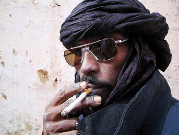 Eine neue Bedeutung erlangt auch die traditionelle Kopfbedeckung. „Der Chèch ist der Reisepass der Imasheren“ meint Akoni lachend und fährt fort: „Wir besitzen die Freiheit zu gehen, wohin wir wollen. Wir kennen keine Grenzen. Aber andererseits besitzen wir keine Papiere. Keinen Reisepass, keine Geburtsurkunde, nichts. Wir sind Gefangene der Sahara.“ Während sich afrikanische MigrantInnen auf den von Imasheren aufgebauten Handlungsraum stützen, um nach Europa zu gelangen, queren sie selbst lediglich die innersaharischen Grenzen. Diese transregionale Arena deckt sich mit ihrem ehemaligen nomadischen Aktionsradius, wenn er auch infolge der postkolonialen Staatenbildung zerschnitten und eingeschränkt wurde.