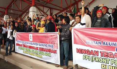 Auch im Februar 2011, als im westjavanischen Cikeusik rund 1.500 Islamisten die lokale Ahmadiyah-Gemeinde – eine pazifistische muslimische Reformbewegung – angriffen und drei ihrer Vertreter brutal ermordeten, spielte die FPI eine führende Rolle. Deden Darmawan Sudjana, ein Ahmadi, der versuchte, sich und seine Gemeinde zu verteidigen und dabei schwer verletzt wurde, wurde ebenfalls verurteilt. „Ungerechtigkeit für alle“, titelte damals die Jakarta Post. Nach Meinung von Elaine Pearso von Human Rights Watch zeigten die Urteile, „dass die Ahmadiya nicht nur von islamischen militanten Mobs eine gewalttätige Diskriminierung erfährt, sondern auch von der indonesischen Justiz“.