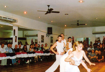 Es ist spät nachts, ein Mittwoch im Zentrum von Buenos Aires. Gespannte Stille herrscht in dem kleinen Saal in der Calle Maipú. Nur das Rascheln von Kleidung oder ein vereinzeltes Scharren von Füßen ist noch zu hören, wenn sich jemand bequemer hinsetzt. Wie ein Seufzer schwebt plötzlich das Wehklagen eines Bandoneons durch den Raum, während die Tänzer gemessenen Schrittes Position auf der Tanzfläche in der Saalmitte beziehen. Eine kurze Pause, kaum länger als ein Atemholen, und wie ein Gewitter bricht die Musik über die ZuschauerInnen herein. Zwei Körper in enganliegenden, glänzenden Hosen und blauen Shirts wirbeln umeinander, verhaken die Beine ineinander, gehen wieder auseinander. Die Melodie wird leiser, ein anderes Paar kommt herein, rot gekleidet, tanzt kein Gewitter, sondern pure Sinnlichkeit. Das Bandoneon wehklagt erneut.