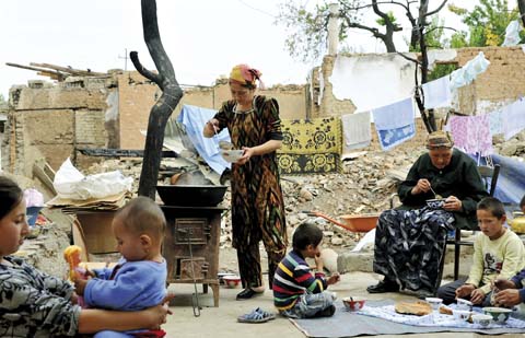 Zwischen den Ruinen ihrer Häuser – die Blumentapete ist unter dem Ruß noch sichtbar, Dach, Türen und Fenster fehlen – bauten die ethnischen UsbekInnen provisorische Unterkünfte. Noch heute haben sie Angst vor weiteren Übergriffen, Racheakten. Bei plötzlichen Verhaftungen muss die Familie schleunigst viel Geld organisieren, um die Verwandten freizukaufen. Die Korruption ist groß. Und jeder Tag in Polizeigewahrsam erhöht das Risiko von Folter und Tod. Das Vertrauen der ethnischen UsbekInnen in Militär und Polizei ist schwer erschüttert.