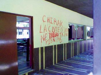 Die seit 1966 in der Hauptstadt Abidjan lebende Geneviève Padovani wusste, dass der Mob irgendwann auch zu ihr kommen würde. Als es so weit war, als die „junge Patrioten“ genannten Horden das 2.400 SchülerInnen zählende Collège Internationale Jean Mermoz stürmten, hatte sie gerade noch Zeit, das Dach der Schule zu erklimmen. Von dort oben sah sie zu, wie die Eindringlinge losrissen, was nicht niet- und nagelfest war, Wasserrohre in die Luft sprengten, Vorhänge mit Benzin tränkten und anzündeten.