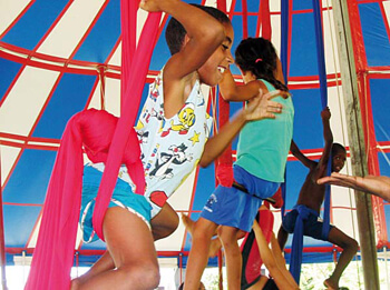 Finanzieren kann sich das Kinderzirkusprojekt aber durch die Auftritte noch lange nicht. Es wird unter anderem von der Norwegian Church Aid (Norwegische Kirchenhilfe) und Terre des Hommes unterstützt. „Das Projekt ermöglicht den Kindern, ihre eigenen Fähigkeiten kennen zu lernen“, erzählt Mônica Solon von Terre des Hommes Brasilien. Es werde nicht auf das Wert gelegt, woran es den Kindern mangelt: „Es fehlt ihnen an vielem, aber sie haben ein so großes Potenzial und so viele Fähigkeiten, die sie im Leben brauchen können!“ Dieses Potenzial in „eine neue Bestimmung“ zu führen, die sie sich selbst schaffen müssen, sei das Ziel des Projekts. „Sie müssen wieder lernen zu träumen, dann wird sich auch ihr Leben verändern“, ist die junge Frau überzeugt. Denn im Projekt Circo Baixada, das es seit vier Jahren in dieser Form gibt, lernen die Kinder nicht nur, sich auf dem Trapez zu bewegen, mit Keulen zu jonglieren oder einen Spagat zu machen, sondern sie sind auch gleichzeitig künstlerische LeiterInnen, ChoreographInnen, ProduzentInnen und suchen die Musik selbst aus. Dabei sollen sie lernen, Verantwortung für ihr Leben zu übernehmen, erklärt die pädagogische Koordinatorin Clause Sabrito.