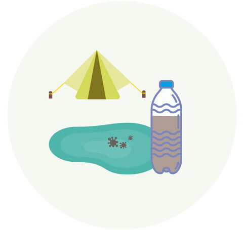 1 Wasser von Fluss oder See in eine klare Plastikflasche (max. 2 Liter) füllen. Wenn es nicht klar ist, vorher durch ein Tuch rinnen lassen, um Sedimente auszusieben.