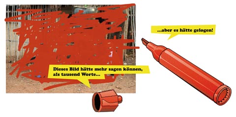 Es ist eine Tatsache, dass Medien und Organisationen in der Regel beim Einsatz von Bildern wesentlich unkritischer verfahren als bei der Wiedergabe des gesprochenen oder geschriebenen Wortes. Bei Texten wird die Quelle geprüft, Aussagen werden autorisiert. Ein zufällig aufgeschnappter Satzfetzen geht nicht als Zitat durch. Ein zufälliger Schnappschuss als Illustration sehr wohl.